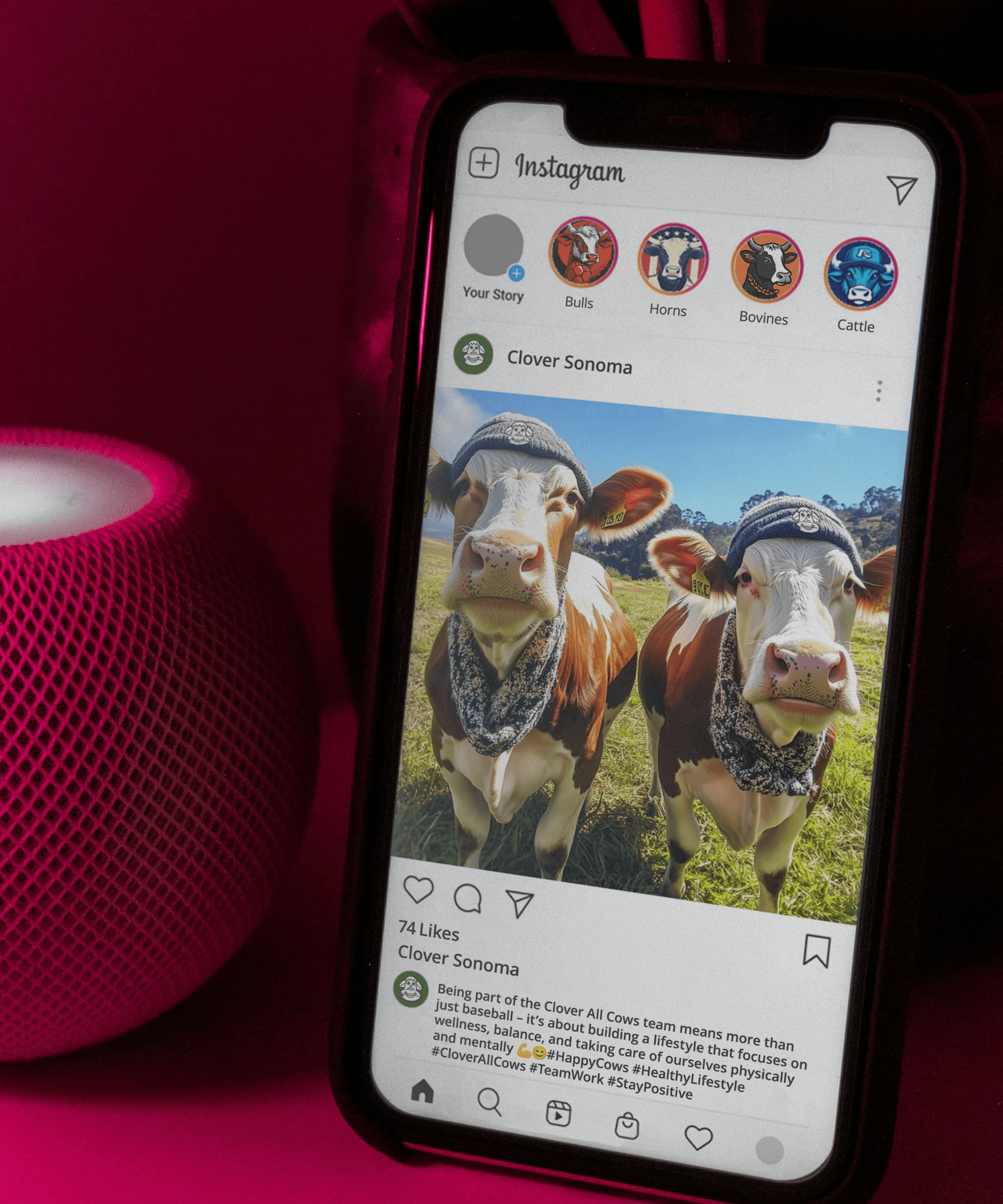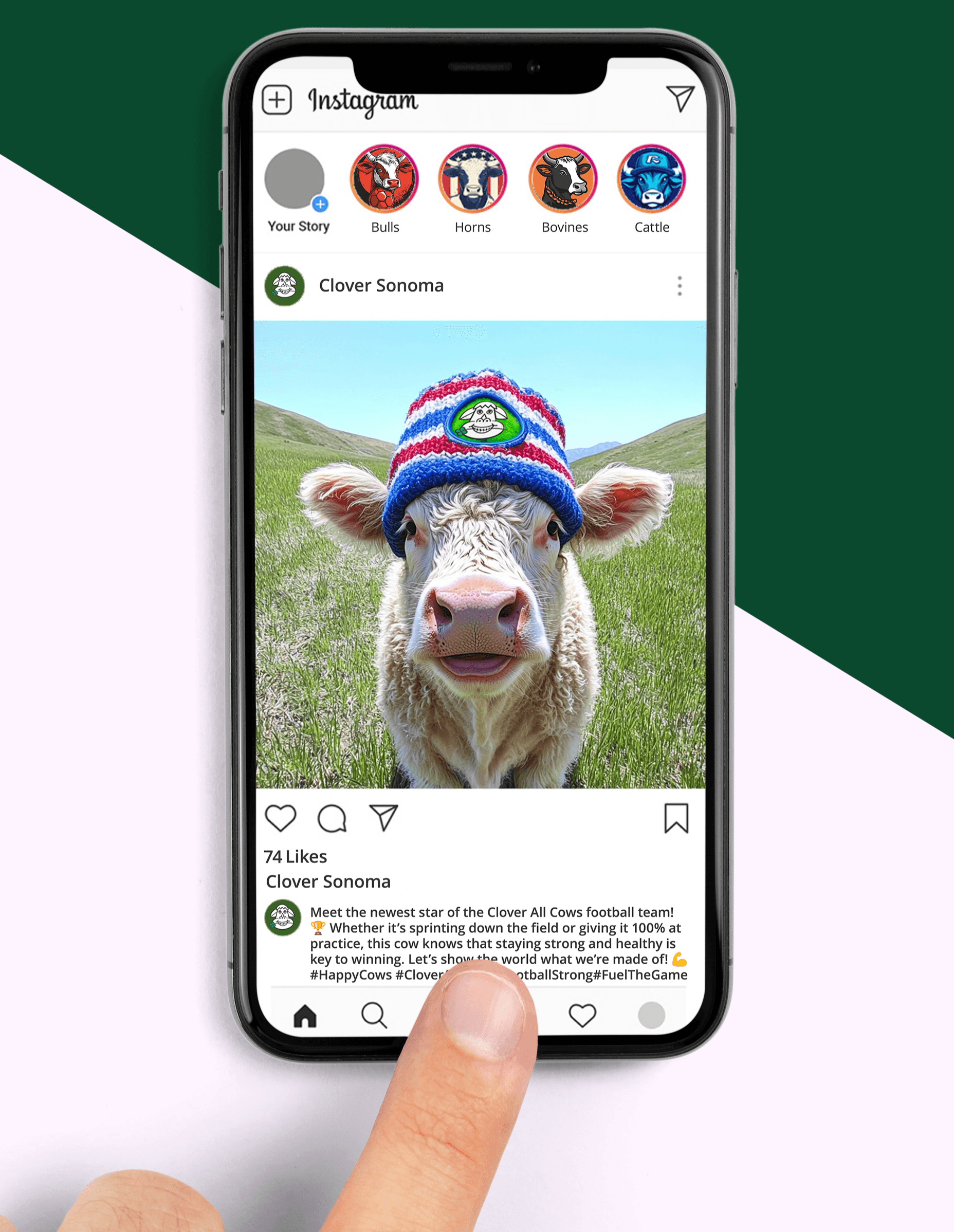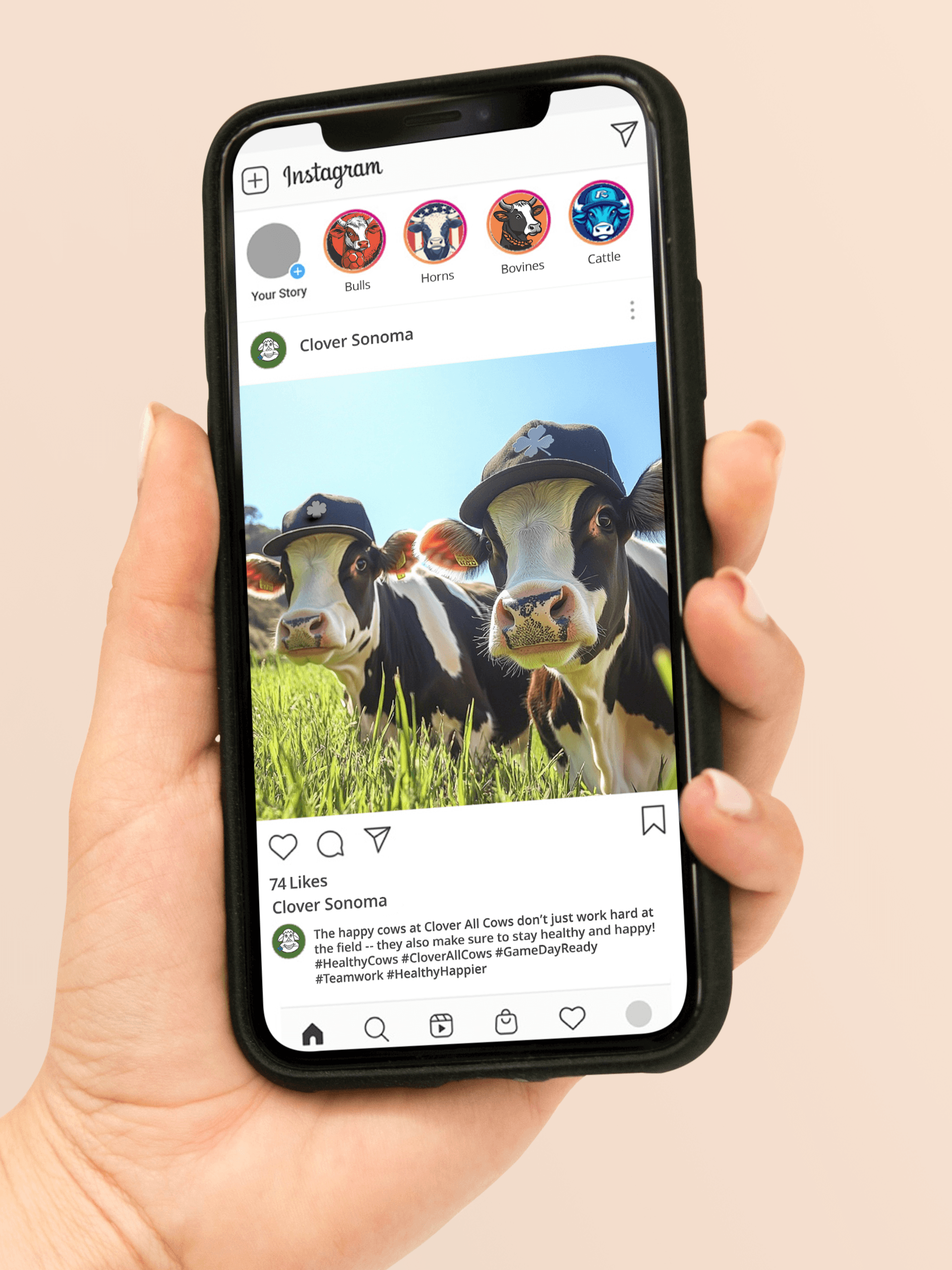 Social Media will be home of the close-ups of our sporty cows enjoying life, and a blooper or two will also help drive new audiences to the Clover brand.